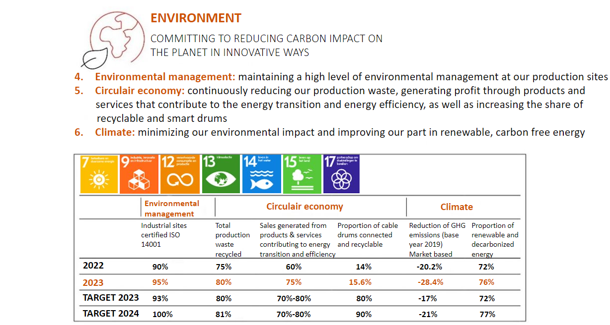 Nexans is also involved in climate efforts in other ways. 100% of the R&D projects are focused on the energy transition and sustainable electrification, and Nexans has set objectives to convert 100% of its vehicle fleet to hybrid or electric by 2030 and to recycle 100% of production waste.