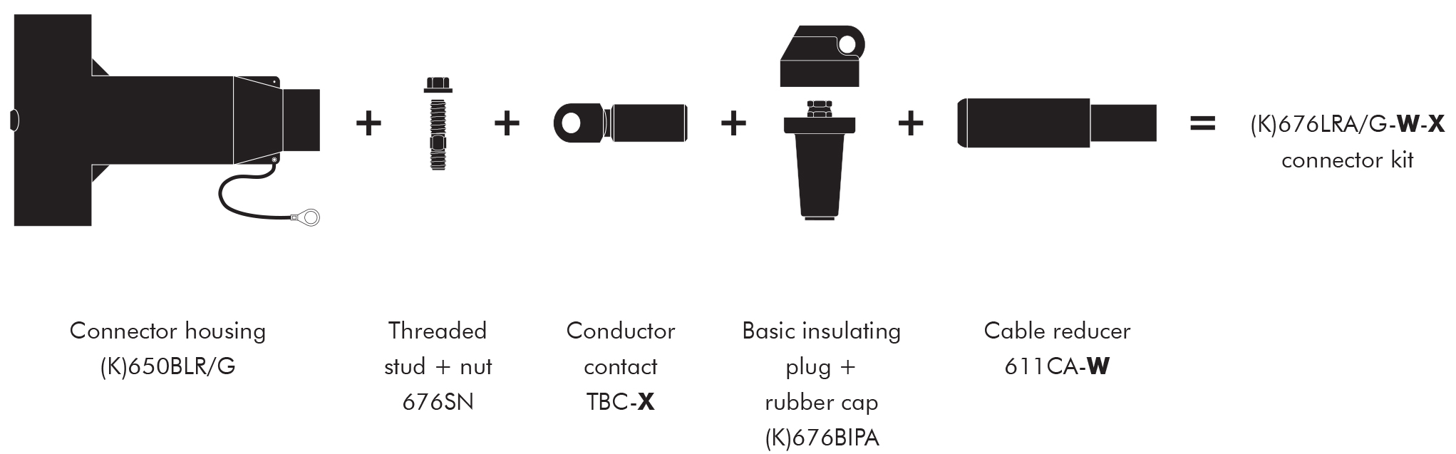Separable tee connector designed to connect polymeric insulated cable to equipment (transformers, switchgear, motors...). Also connects cable to cable, using the appropriate mating part.