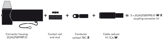 Separable coupling connector (bolted type) for dual cable arrangement. It has been designed to be used with 484TB and 489TB separable Tee connector.